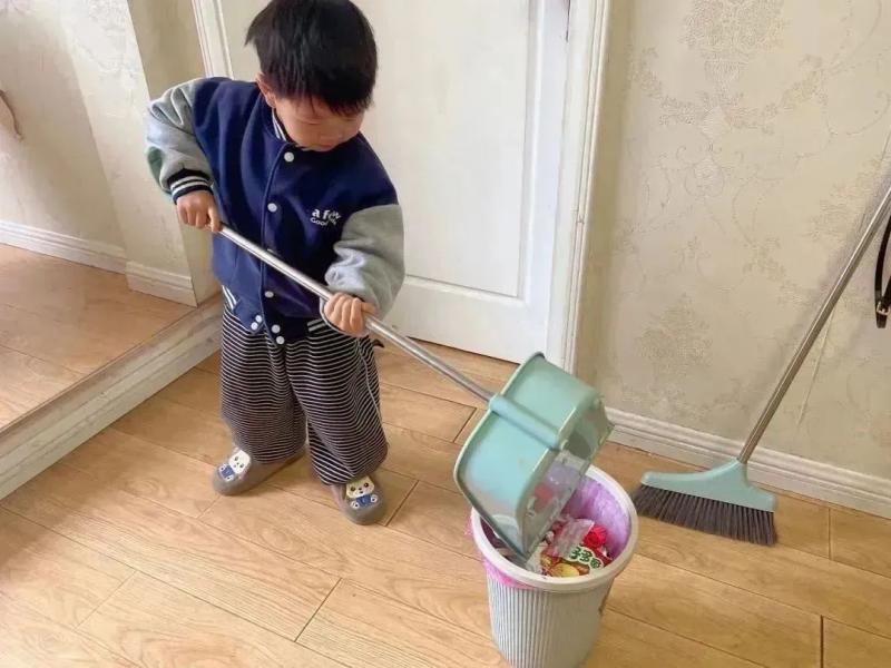 快看!八幼的孩子们正在热火朝天地干着。扫地擦桌,收拾整理,全家上下齐动手,干干净净迎接新年。