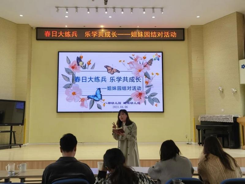 为进一步提高教师的专业水平和综合素养,结合区级青年教师基本功评比活动,4月6日,八都幼儿园、桃源幼儿园开展了以“春日大练兵 乐‘学’共成长”为主题的姐妹园结对活动。