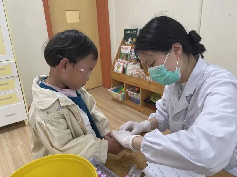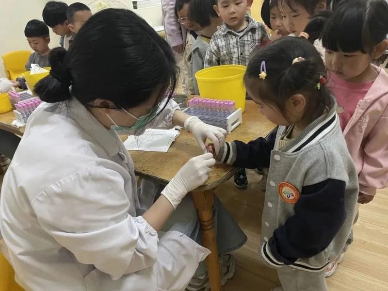 为全面了解幼儿的生长发育和健康状况,4月10日至12日,吴江区第四人民医院预防保健所的医生来到八都幼儿园,为全体幼儿开展了“迎六一”年度健康体检。体检内容包括:测量身高与体重、口腔检查与心肺、血常规等。