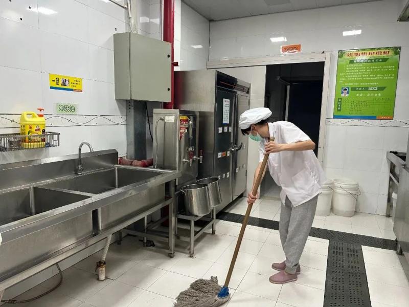 民以食为天,食以安为先,食堂卫生关系到大家的饮食安全,不容忽视。食堂工作人员严把孩子的“入口关”,分工明确、面面俱到,对幼儿餐具、锅灶、台面、地面、墙面等进行了清洗和消毒,严格做到无残留、无污渍。