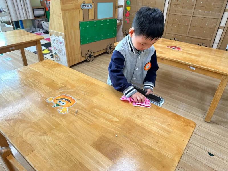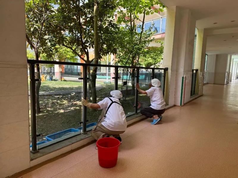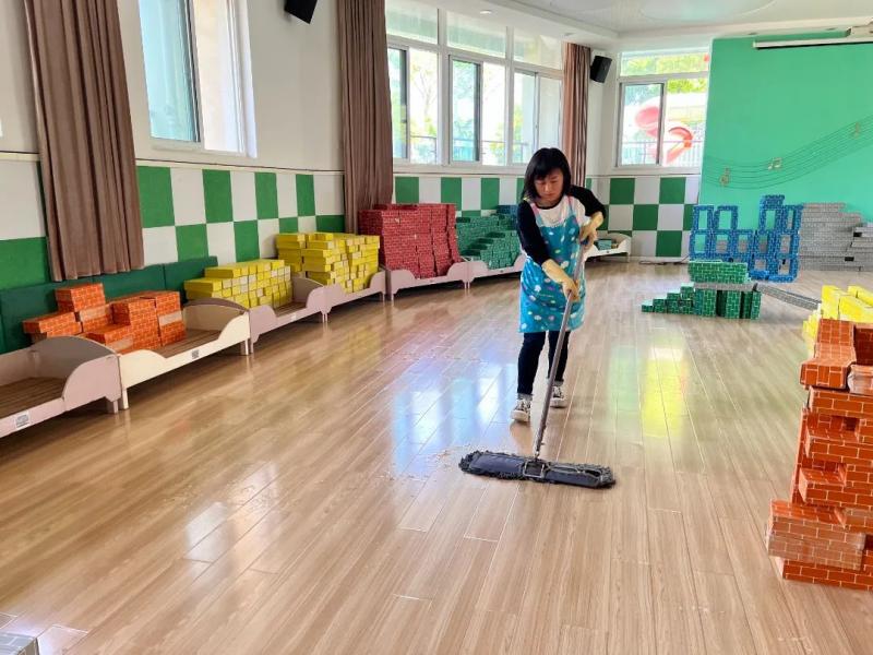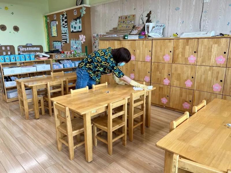 各班保育员仔细对活动室的桌椅、玩教具等进行了清洗与消毒,对班级的其他物品及地面、门窗等进行了整理和擦拭。