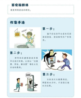 骗子冒充游戏玩家等,以低价出售、高价收购等吸引注意,引诱学生使用本人或家长支付账号付款,实施诈骗。家长要对子女保密支付账号密码,教育子女不要轻信网络游戏中的优惠、中奖等信息,只能在正规平台交易。