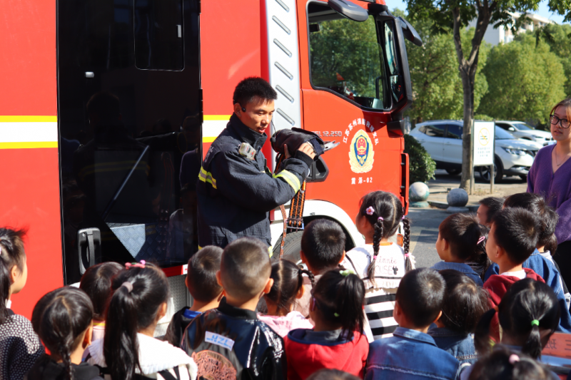 消防员叔叔走进班级,为孩子们上了一堂生动的消防安全课。他们借助图片、视频帮助幼儿了解火灾发生的原因、发生火灾应如何逃生、如何报警等常识。