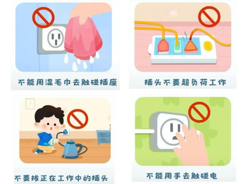 禁止孩子玩火动电:教育幼儿不要用手触摸电器开关等设备,室内电源插头应安装在孩子摸不到的地方。家用电器使用完毕或要离家外出时,要关掉所有电器电源,拔掉电源插头,防止发生危险。提醒幼儿不玩火柴、打火机和蜡烛;引导幼儿了解防火小知识,知道119火警电话。